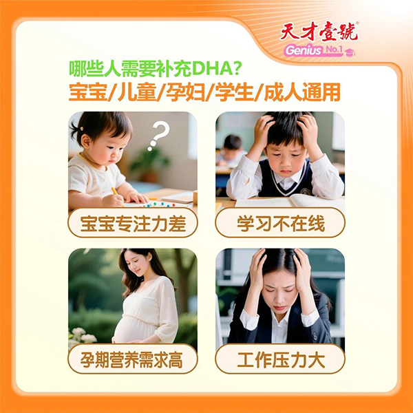 DHA(二十二碳六烯酸)是人體必須的不飽和脂肪酸,在大腦和視覺系統中占據關鍵地位,有“腦黃金”之稱。這款